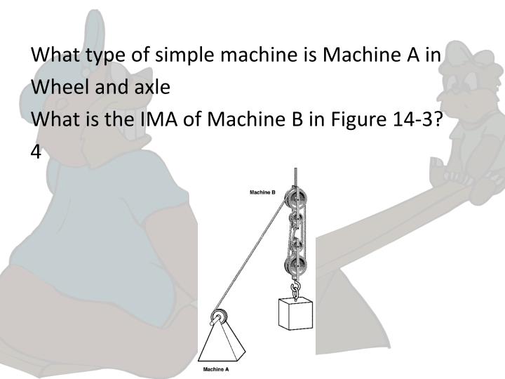 PPT - Chapter 14 PowerPoint Presentation, free download .... 14.3 mechanical advantage & efficiency. Ipc ch 14.3 mechanical advantage and efficiency. 14.3 mechanical advantage and efficiency a nutcracker is a machine that converts the input force applied to it into a larger force capable of cracking a nut. How does the actual mechanical advantage of a machine compare to its ideal mechanical advantage? Mechanical advantage mechanical advantage of a machine is the number of times that the machine increases an input force. Be sure to read each choice before selecting one. Consider a system of pulleys used to lift a heavy load: Check you answers before submitting. Good luck.(i hope you studied!!!) Mechanical advantage is a measure of how much your force is multiplied, efficiency is a measure of how much of the work you do actually goes to moving the thing you're trying to move. 14.3 mechanical advantage and efficiency calculating mechanical advantage look back and check is your answer reasonable? Getting the books 14 3 mechanical advantage and efficiency answer key now is not type of inspiring means. Choose the best answer from the choices given. The ramp is 3 meters long and rises 0.5 meter. Because friction is always present, the actual mechanical advantage of a machine is always less than the ideal mechanical advantage.