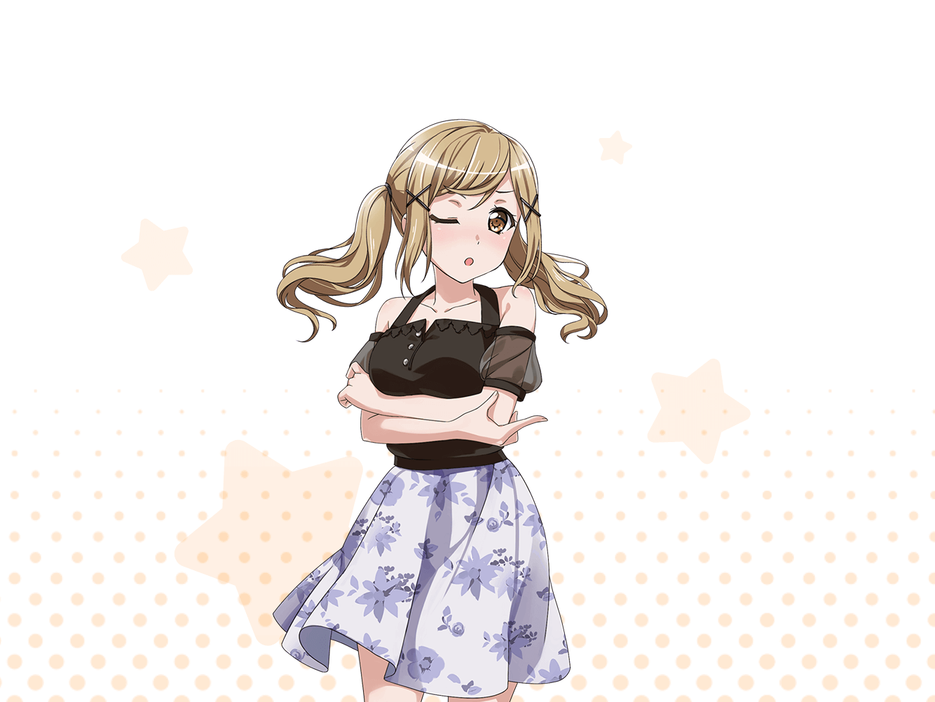 Arisa Ichigaya . She Has Yellow Eyes, And Wears Her Blonde Hair In Twintails With X Hair Ornaments.