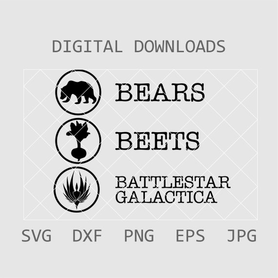 Bears Beets Battlestar Galactica svg Dwight Schrute svgs le | Etsy. This is a personal use svg file and it's perfectly compatible with cricut explore, silhouette cameo, brother scan n cut. Get crafting with this exclusively designed lovesvg freebie. Bears beets fact battlestar galactica shirt nice design gift unisex t shirt new. Discover the magic of the internet at imgur, a community powered entertainment destination. A separately saved pdf separately saved dxf file(s) separately saved svg file(s) a single illustrator compatible eps file. Find great deals on ebay for bears beets battlestar galactica. Package contains files in svg, dxf, png, eps formats. Lift your spirits with funny jokes, trending memes, entertaining gifs, inspiring stories, viral videos, and so much more. Suitable for apparel, scrapbooks, decals, and many other creative uses. Check out our bears beets battlestar galactica svg selection for the very best in unique or custom, handmade pieces from our shops. You'll get other products you may like. Package contains files in svg, dxf, png, eps formats. It's a reference to this scene from the office where jim copies dwight's mannerisms. Explore our other popular graphic design and craft resources. Become a member and get unlimited access to the growing design catalog.